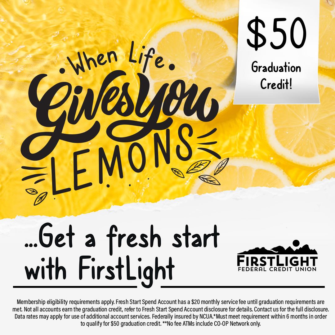 Membership eligibility requirements apply. Fresh Start Spend Account has a $20 monthly service fee until graduation requirements are met. Not all accounts earn the graduation credit, refer to Fresh Start Spend Account disclosure for details. Contact us for the full disclosure. Data rates may apply for use of additional account services. Federally insured by NCUA.*Must meet requirement within 6 months in order to qualify for $50 graduation credit. **No fee ATMs include CO-OP Network only.